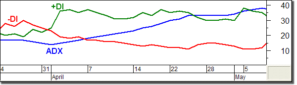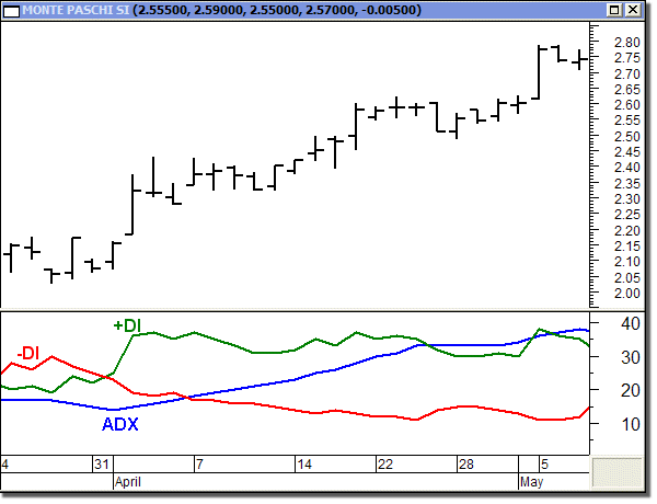 Quando il +DI incrocia al rialzo il –DI, anche l’ADX inizia a