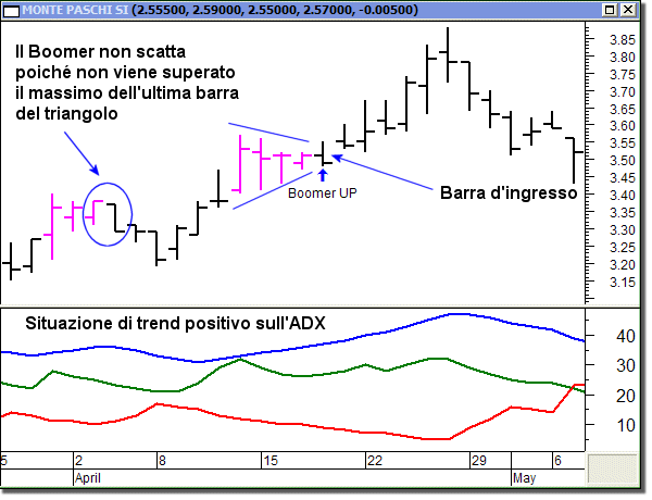 A questo punto il Boomer viene filtrato dalla condizione dell’ADX e il