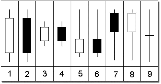 9. Doji. Completo equilibrio. Se è vero che un ampio real body