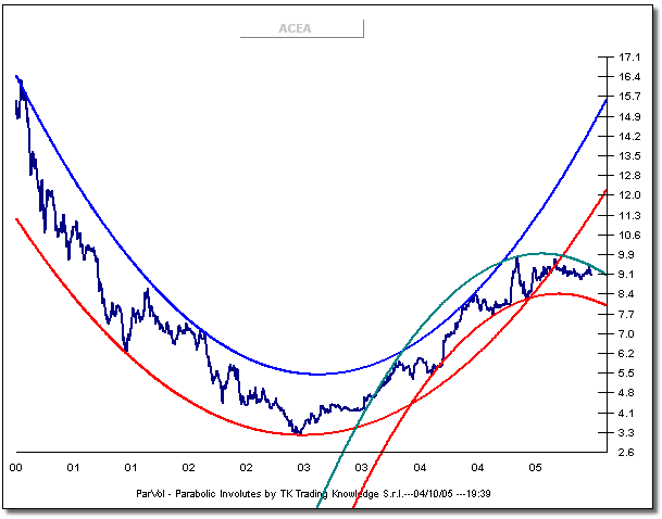 La concordanza tra il comportamento del titolo Acea e il canale parabolico