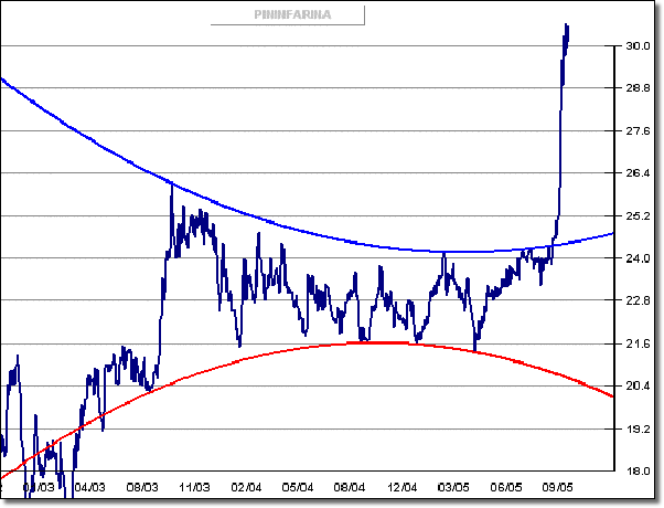 La lettura grafica del comportamento del titolo Pininfarina raffigurato in
