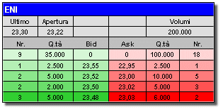 andare long a 23,22, che in teoria è un buon prezzo di acquisto, sia una buona occasione di trading. Infatti, il book al momento della validazione potrebbe, ad esempio, presentarsi con il seguente aspetto:
