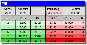livello in vendita (imbalance negativo e rosso) al prezzo di