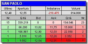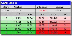 all’ultima chiusura che è stata a 12,40) con un imbalance negativo di
