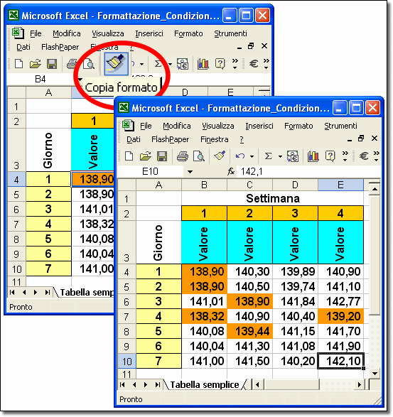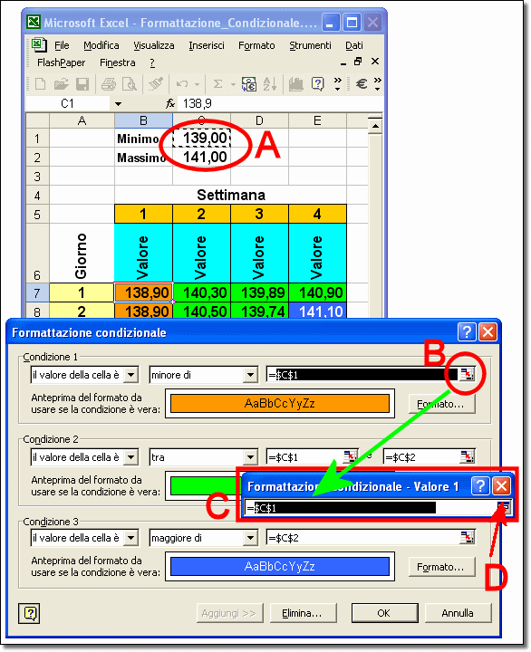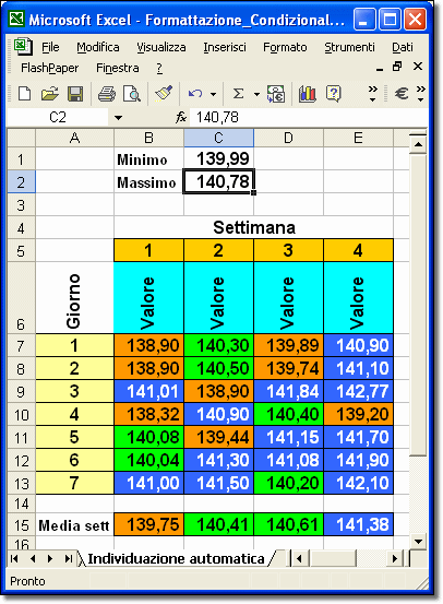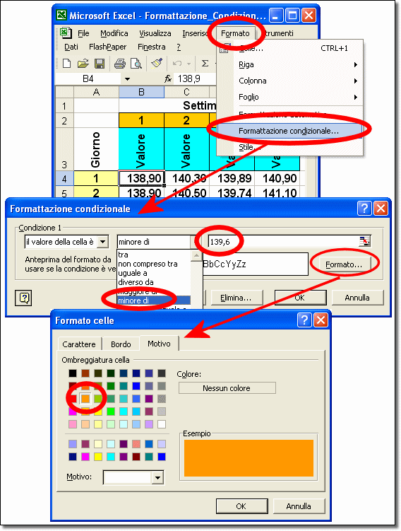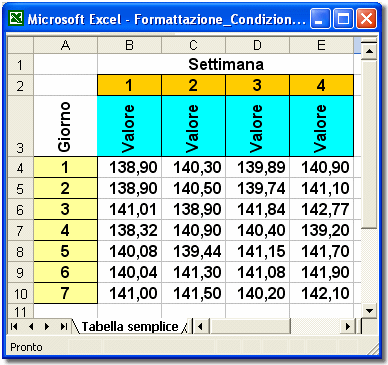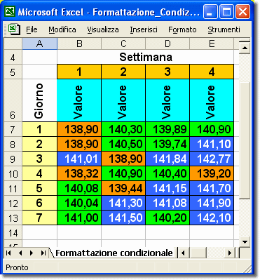 dei valori, 138.90) e attivate il menu Formato/Formattazione condizionale