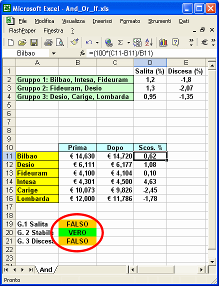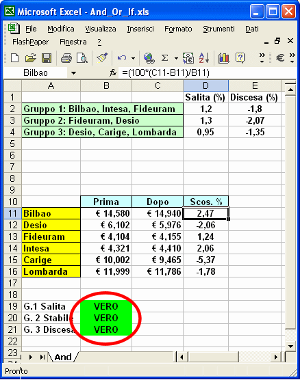La condizione presente nello spreadsheet è un po’ più complessa perché coinvolge contemporaneamente due titoli azionari: