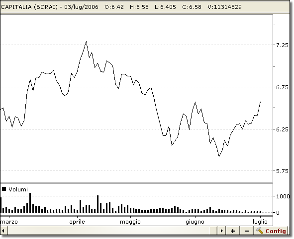 Ora osserviamo il titolo CAPITALIA, con compressione temporale