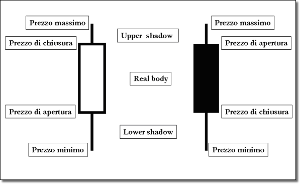 candlestick; il range di prezzi compreso fra i prezzi di apertura e di