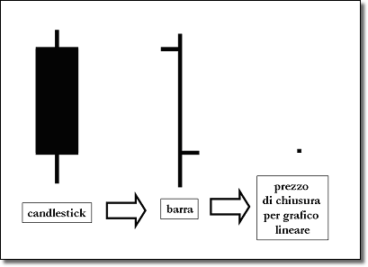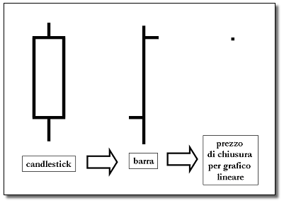 Vediamo ora come si può passare da una candlestick a una barra a un punto