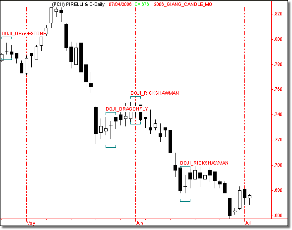 Pirelli & C. grafico Candlestick con compressione daily. Esempi di