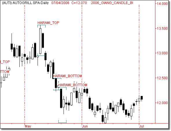 trend al ribasso, mentre i due harami bottom, della fine di maggio, non