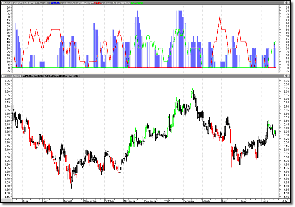 l’attività sul titolo in termini di percentuale di barre nella finestra i