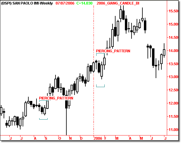 candlestick piercing line si è realizzato due volte sul grafico con