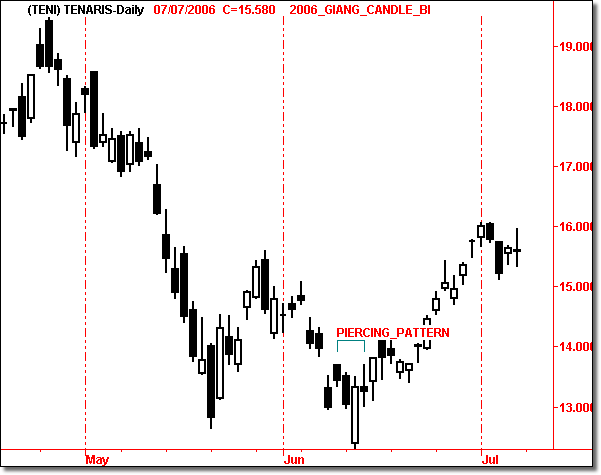 piercing line, è costituito da due candlestick di diverso colore e si