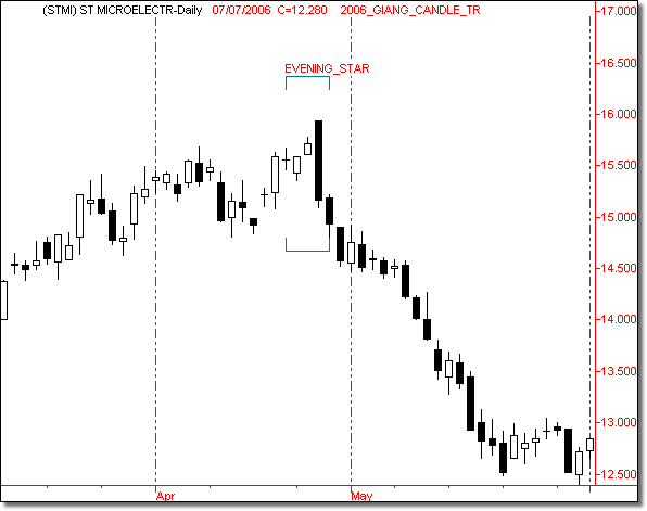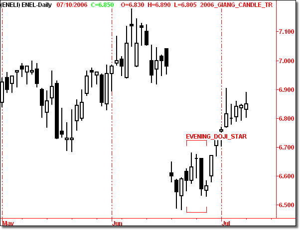 giorno 26 giugno 2006; la terza candlestick è penetrata profondamente nel real body della prima, superandone il minimo; però il segnale è stato