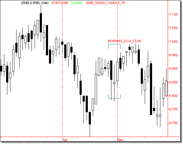 star diventerebbe morning doji star qualora la candela “star” avesse un real body talmente piccolo da farlo rientrare nei livelli di tolleranza per