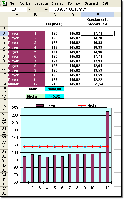 caso specifico) del valore della media. Analogamente, nella cella