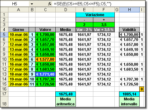 aritmetica (=$D$17), determinata nella formula contenuta, appunto, nella