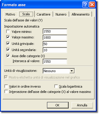scheda Scala dalla finestra di dialogo che compare. Un valore minimo di