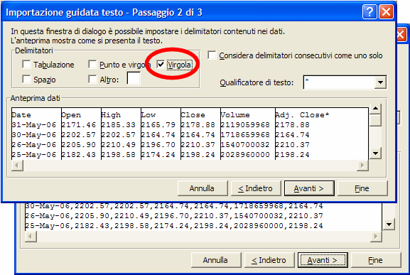 nel nostro caso è la virgola. Apponendo il segno di spunta in