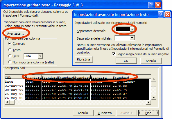 Occorre comunque indicare a Excel che in tali colonne il separatore
