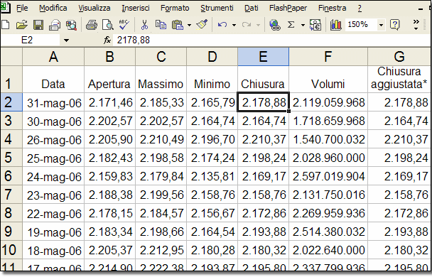 Massimo…) è ora presente in inglese (Date, Open, High…); tale