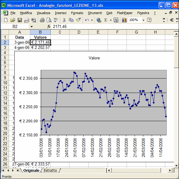 trasferito in un foglio di Excel (denominato Originale) i dati relativi
