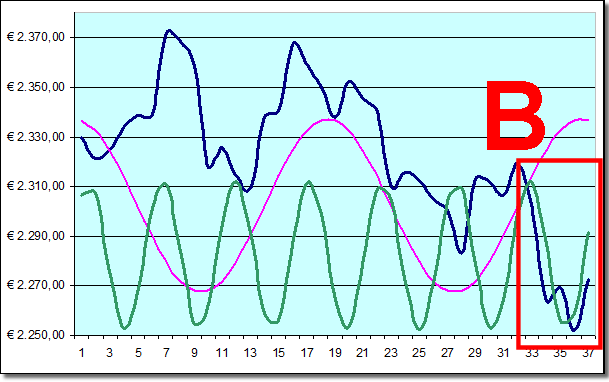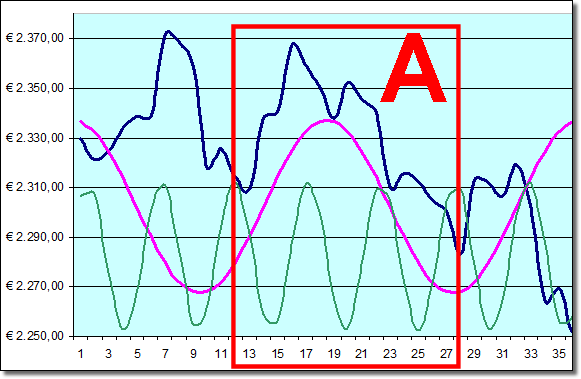 somiglianza tra l’andamento del titolo (in blu) e quello sinusoidale (in