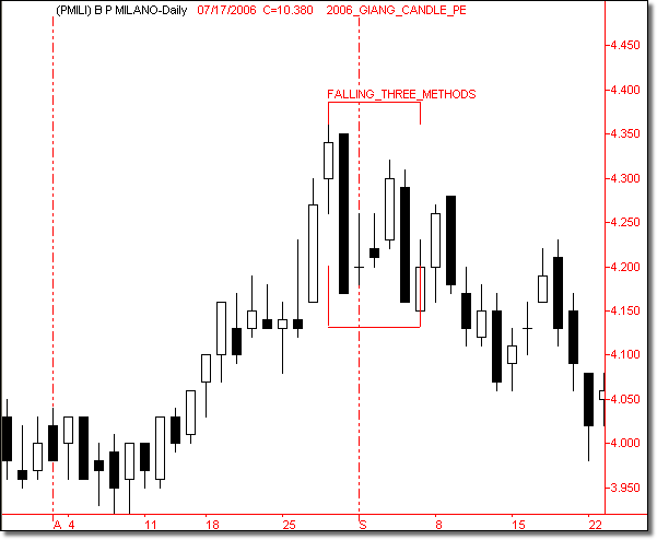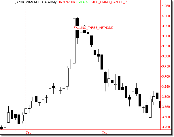 settembre 2005 si è realizzato il pattern candlestick Falling three
