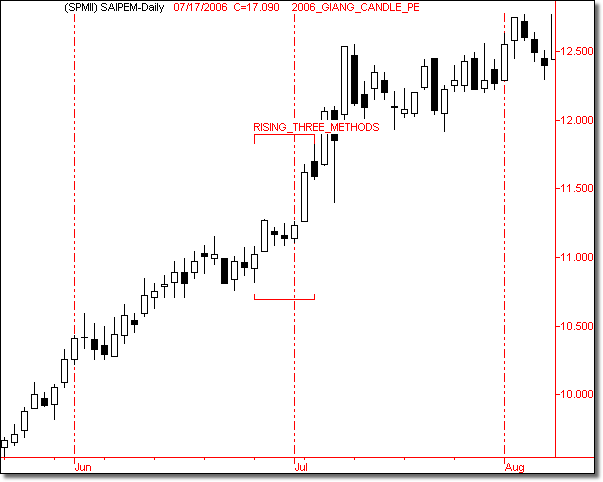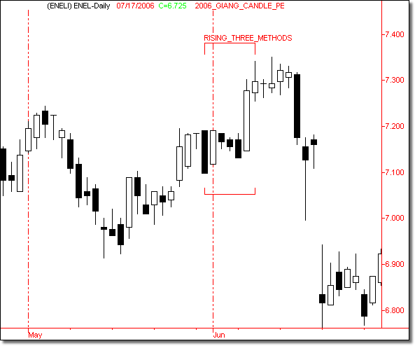 continuazione del trend, cominciando dai pattern candlestick rising and falling three methods.