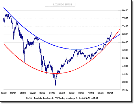 Figura B/6/1 Indice SMI Zurigo 2000 –2005: Fuoriuscita al rialzo da