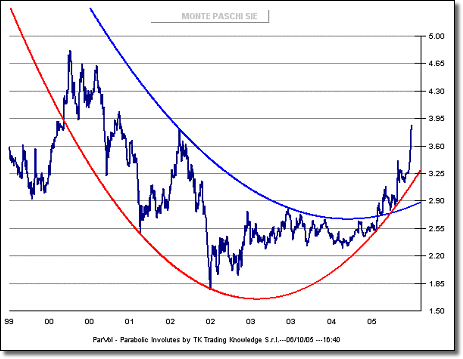 parabolica inferiore rossa di supporto, nel caso del monte Paschi di Siena