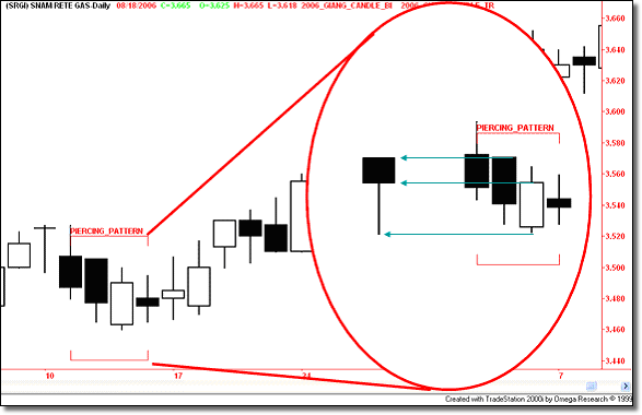 Piercing, Thrusting Line, Dark Cloud Cover e infine Incomplete Dark Cloud Cover.