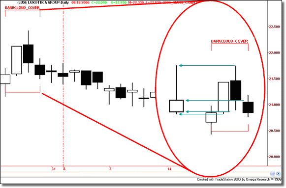 Dark Cloud Cover – la close della seconda candlestick supera al
