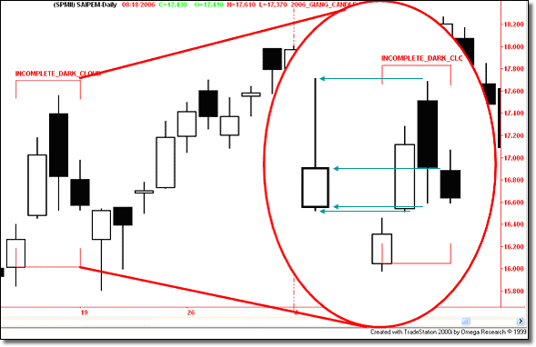 pattern Incomplete Dark Cloud Cover in una candlestick singola.
