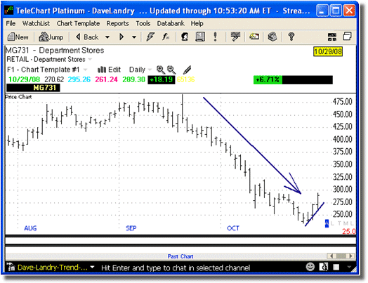 Ed anche il settore, quello dei grandi magazzini, si trovava in downtrend.