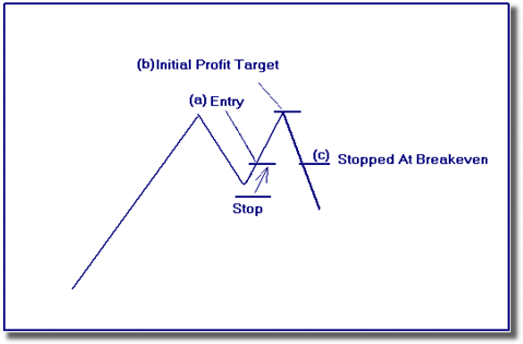 avere dei profitti parziali (b). A quel punto muoviamo lo stop al punto di