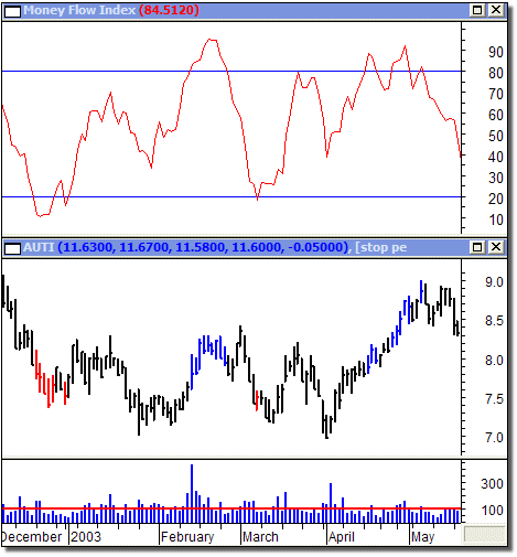 MFI, Money Flow Index. Indicatore che ha come obiettivo la valutazione della “direzione del denaro”, per comprendere se sta “entrando” su un titolo o se ne sta uscendo, in modo da comprendere se sia prevalente il denaro (gli acquisti) o la lettera (le vendite). L’MFI può oscillare tra zero e 100, pertanto valori superiori a 80 indicano un significativo “ingresso” di denaro sul titolo. Da un punto vi vista operativo, è utile valutare l’MFI per comprendere se rialzi o ribassi di prezzo siano effettivamente sostenuti anche da significativi movimenti di denaro.